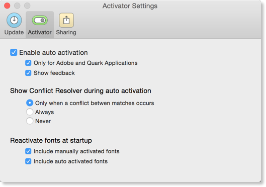 - Click the Activator tab in the Preferences dialog.
