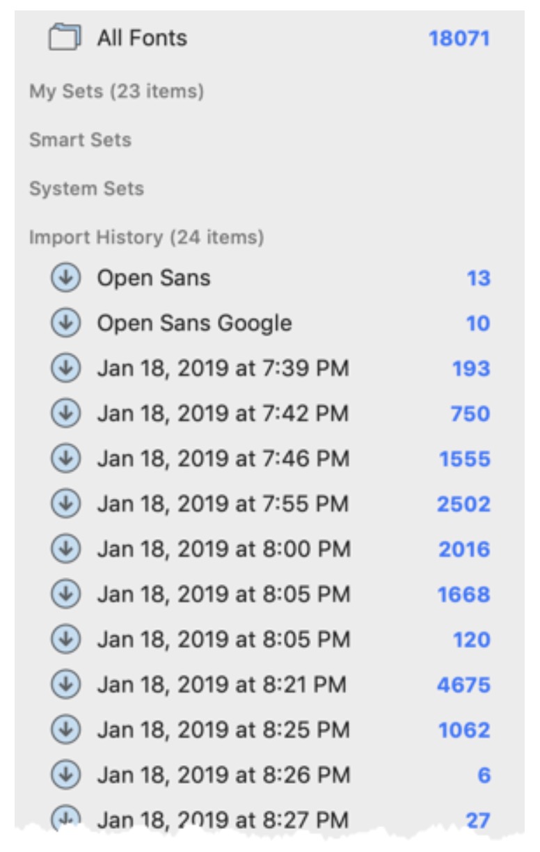 - Use the File > Import Fonts menu command (Command+O) to select a folder or font files to import.